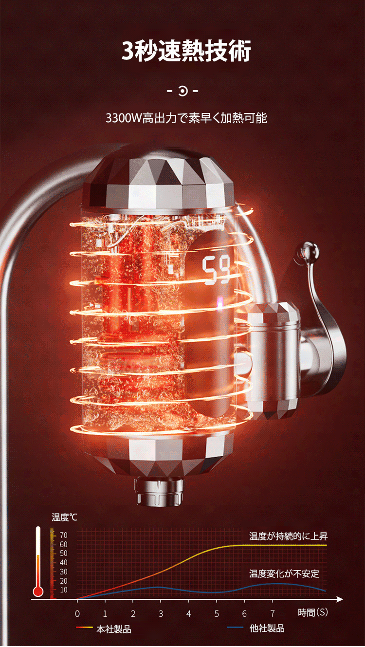 即熱式LEDデジタル表示付き蛇口