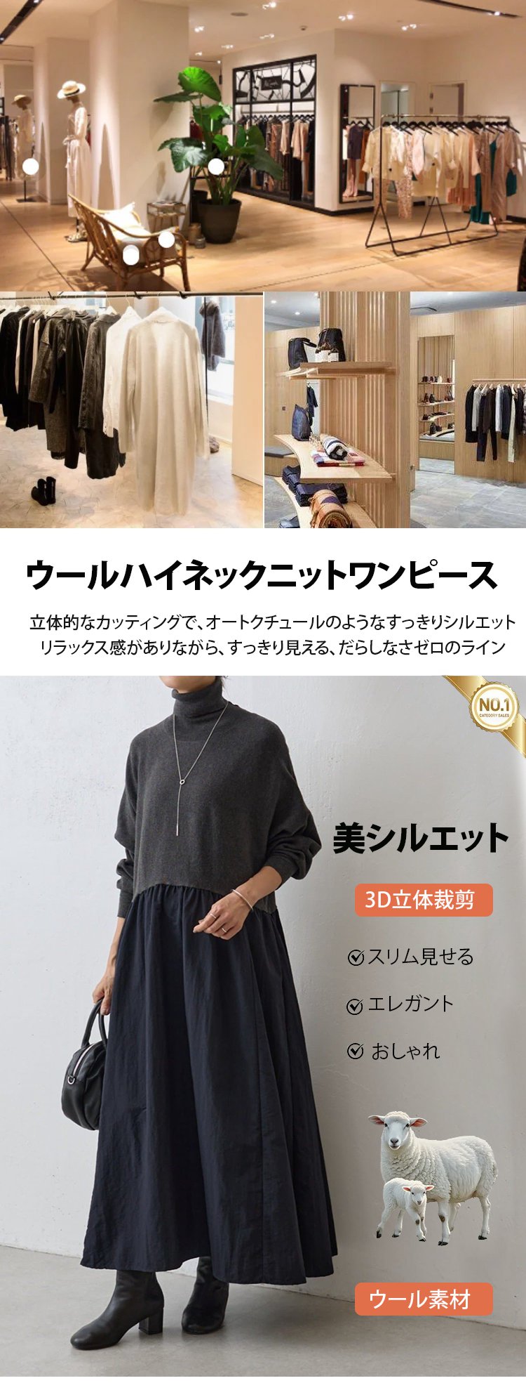 ハイネックワンピース