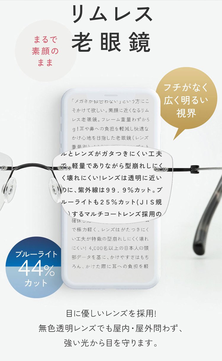 日本の眼科医療技術と共同開発し、ドイツで特許を取得した最新の「累進多焦点レンズ」を採用。