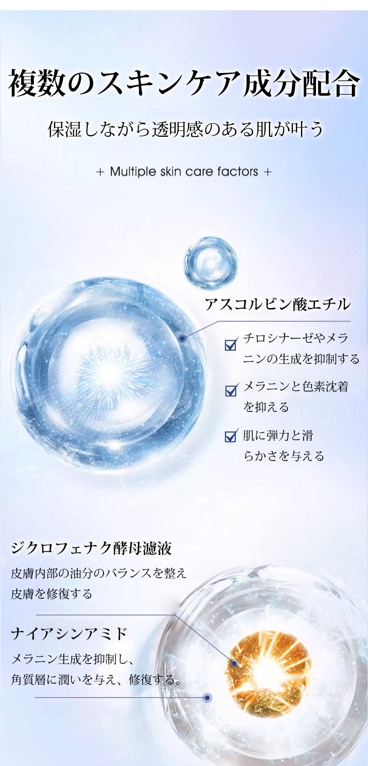 10種類以上の植物由来エキスを配合した独自処方が、肌の奥深くまで浸透し、メラニンの”元”からアプローチ。敏感肌の方でも、安心してお使いいただけます
