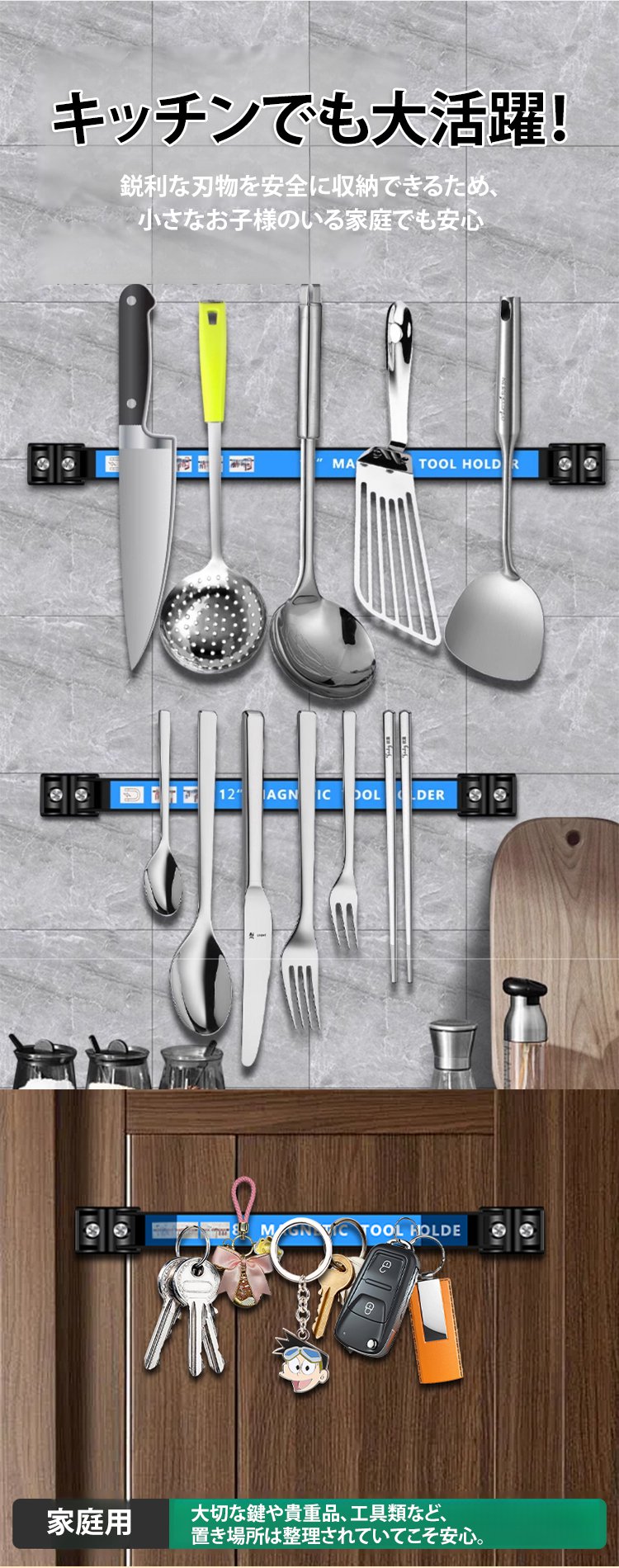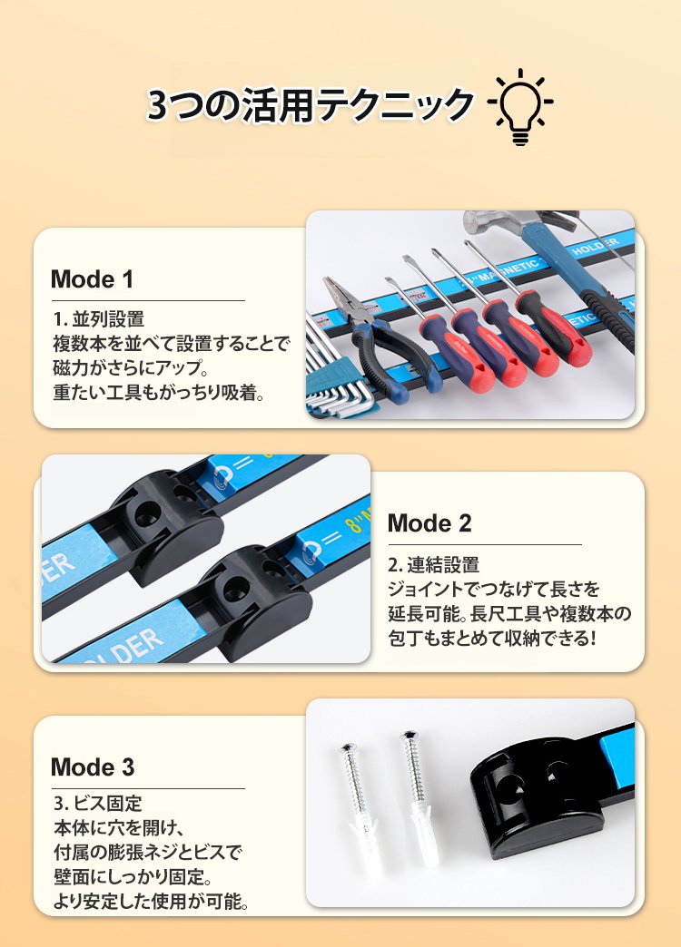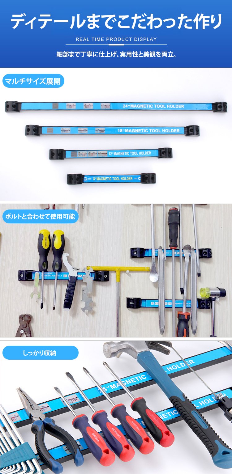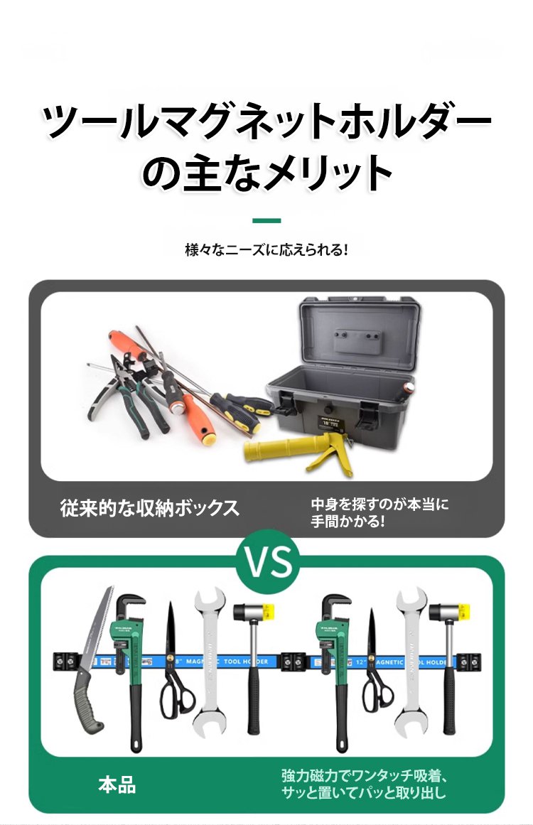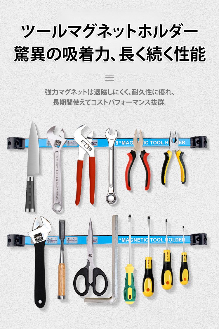 超強力な磁力で、30kgの重さにも対応!工具の落下心配は終わり、強力な磁力で工具を安全に保持するツールバー、錆びない丈夫さ!