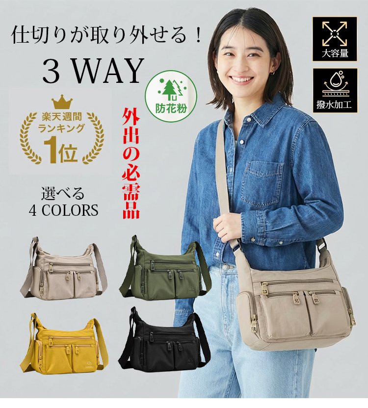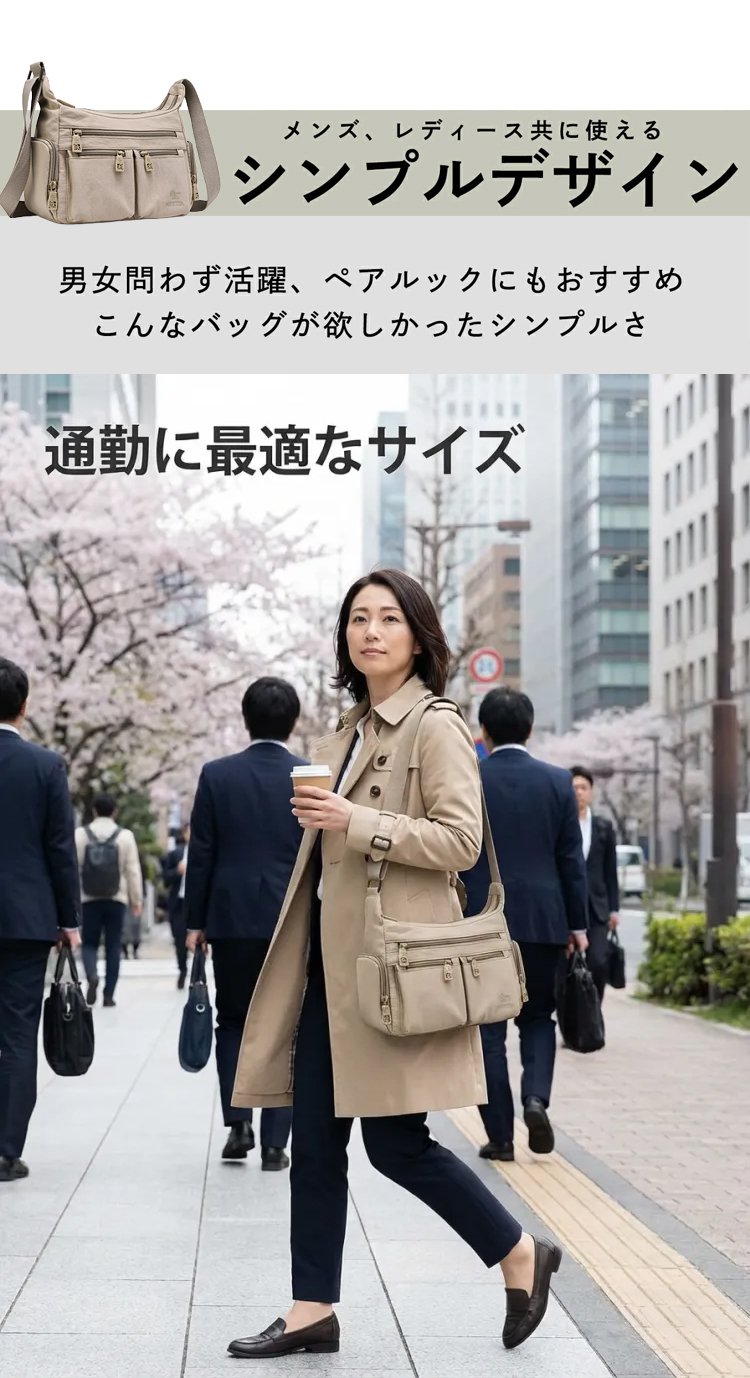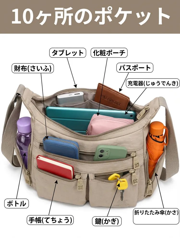 多層大容量ショルダーバッグ