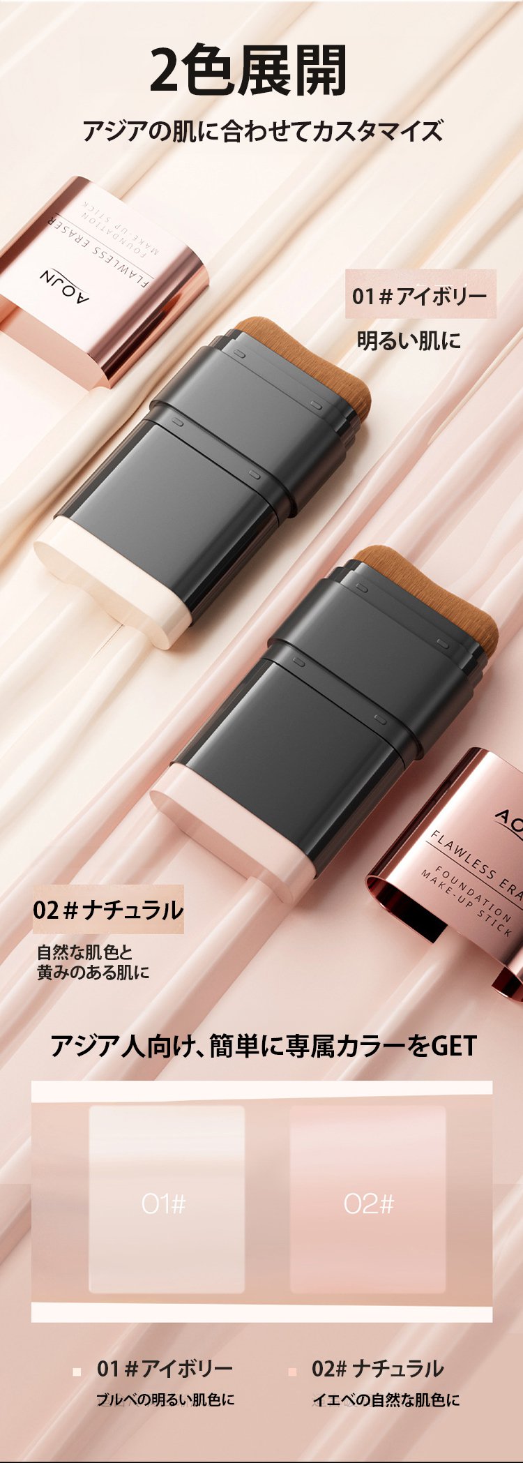 【24時間持続】ブラシ付きファンデーションスティック
