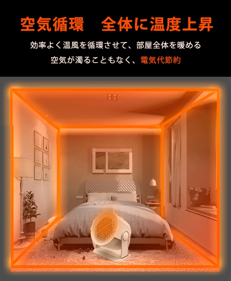 【冷暖両用電気ヒーター】3秒速暖 部屋中を温める